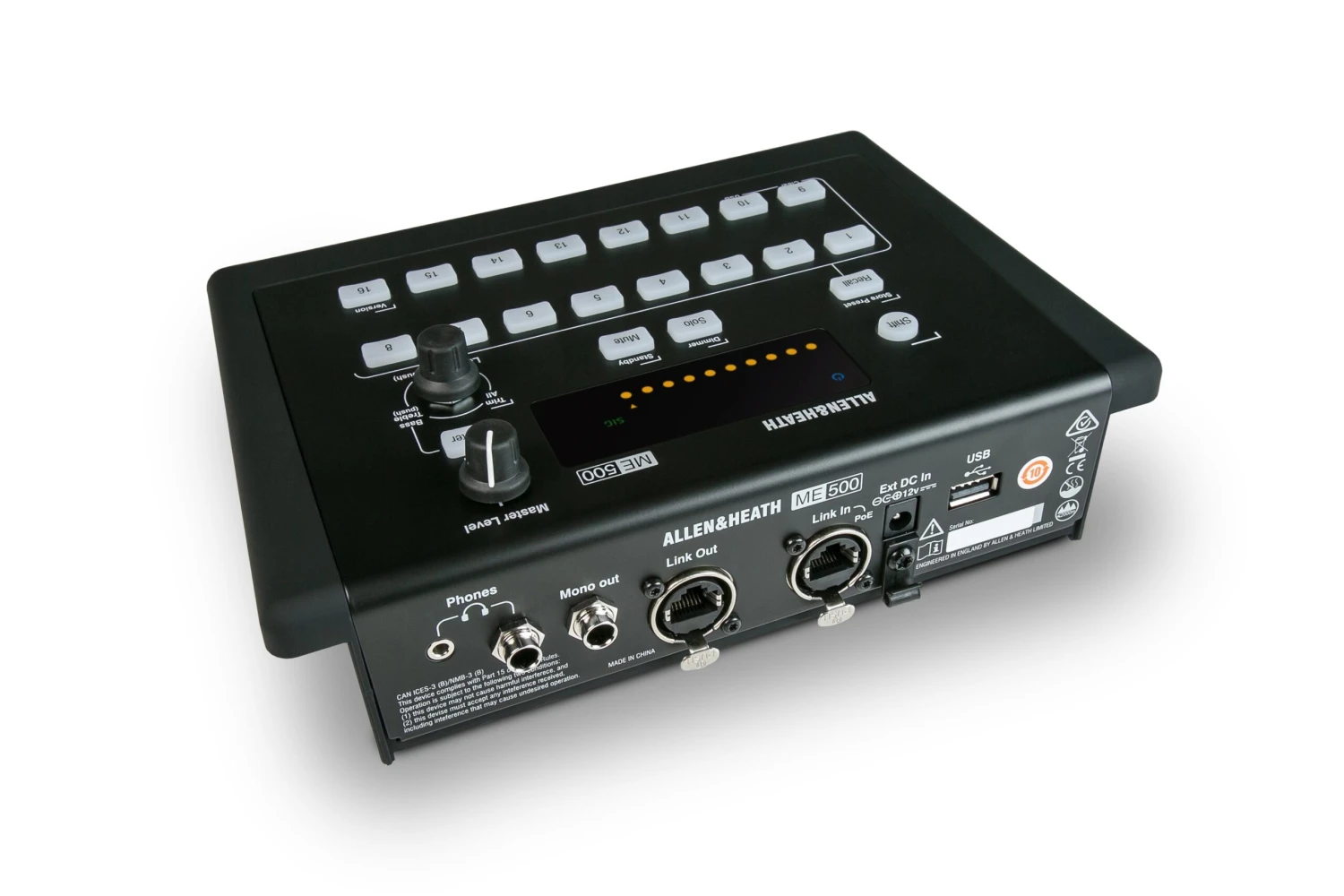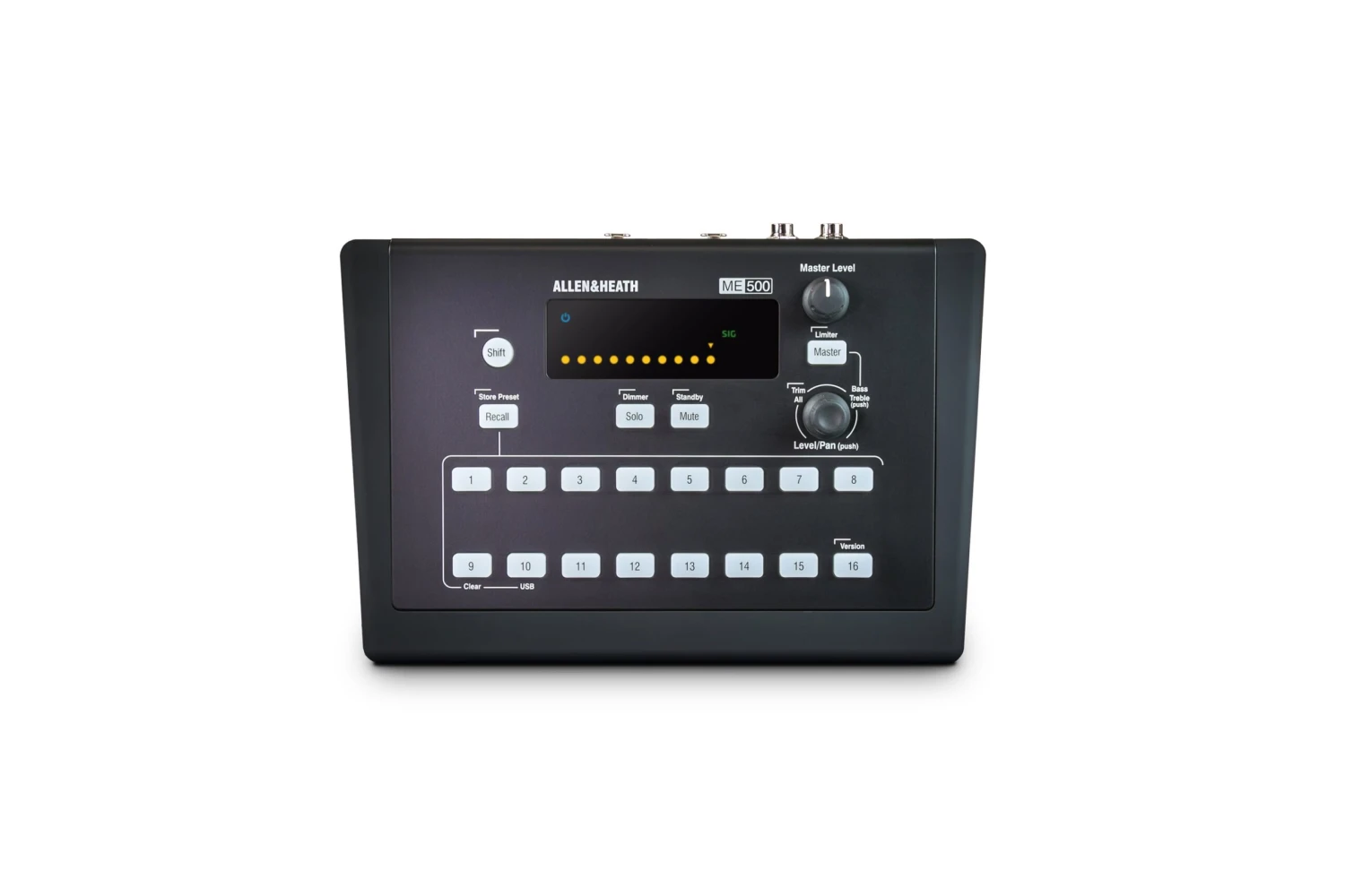 ME-500 is a powerful walk-up-and-mix solution that’s quick to set up and easy for just about anyone to learn in moments. The ME-500 personal mixer’s intuitive hands-on controls and crisp visual display make it easy for musicians to quickly build and control their own monitor mixes. With plug ‘n’ play setup and self-sufficient musicians, ME-500 is also a massive time-saver for the audio engineer.