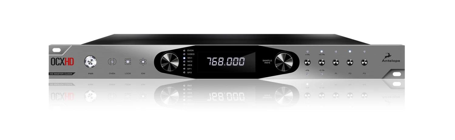 Additionally, OCX HD offers two Word Clock Inputs and a Video Sync Input, which can resolve to a huge variety of SD and HD formats, as well as clock distribution with gear-boxing, and pull-up and pull-down rates, as featured in the triple clock powerhouse, Trinity Master Clock. A 10 MHz Input allows for syncing with Antelope’s newest Atomic Clock – 10MX.