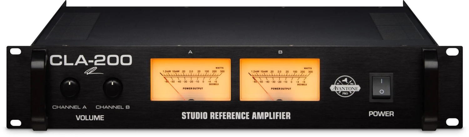 The Avantone Pro CLA-200 Studio Reference Amplifier is a classically designed Class A/B amplifier. In a standard 2U rack mount chassis, this amplifier can generate over 200 watts per channel into an 8 ohm load, making it perfect for medium to large speakers in a studio environment. The CLA200 is convection cooled – no fan noise, so it can be used in the same room as the monitors.