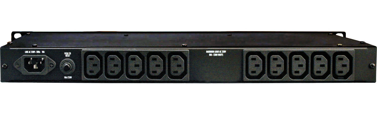 Install an M-10Lx E in to the top slot of your rack, and the ten switched outlets in the rear panel will power up and protect all your equipment up to a 10-amp load. Illuminate your rack with two retractable, front panel lights