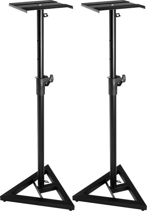 This stand is designed with home and project recording studios in mind. The height adjusts for listening sitting or standing and will lock in place with a security pin. Three adjustable leveling spikes on the bottom of the base keep this stand stable on any carpeted surface. Entire stand breaks down into three pieces for easy storage and travel.