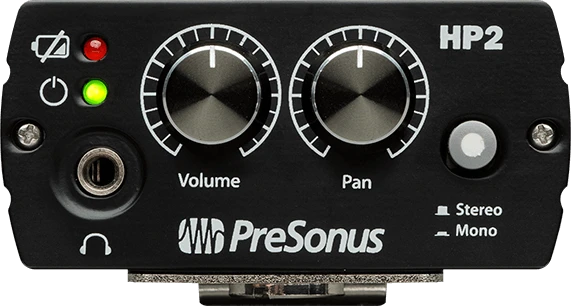 Portable and compact, the HP2 gives you all you need to drive your headphones or in-ears without complicating your setup. It sports two XLR line-level inputs and one stereo 1/8-inch headphone output with volume control. Operation can be switched between stereo and mono, and a Pan knob is provided. Like all PreSonus gear, it’s built to take the rigors of life on the road. And it mounts on a microphone stand or clips to your belt. Simple, easy to use, built to travel, has the right features, sounds great.