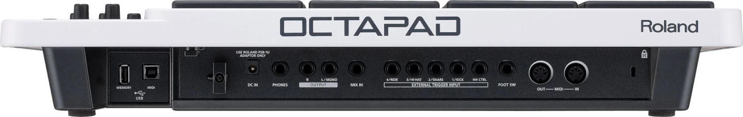 Packed with over 600 instruments arranged in 50 kits, plus effects, the Octapad features eight large touch-sensitive pads, an easy-to-use interface, a hi-hat controller, a Phrase Loop function, and USB connectivity. Trigger inputs allow you to use it with acoustic drums, or you can stand mount the Octapad and use it as a drum in its own right to augment your kit.