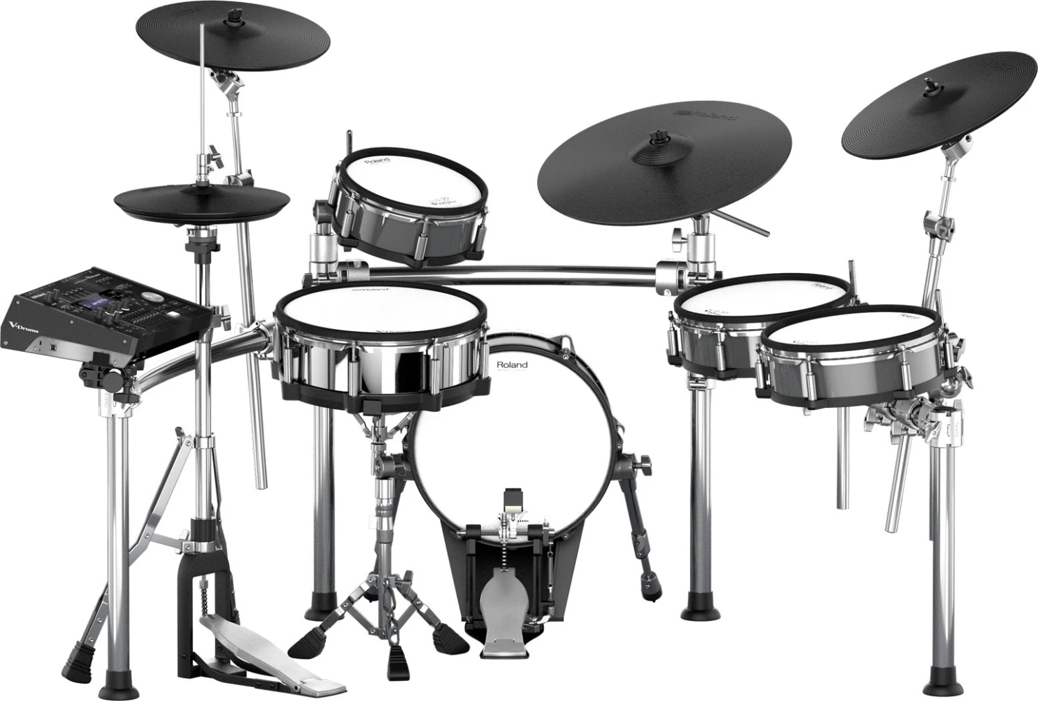 – Additional cymbal pads include VH-13 V-Hi-Hat, CY-14C crash, and CY-15R crash/ride