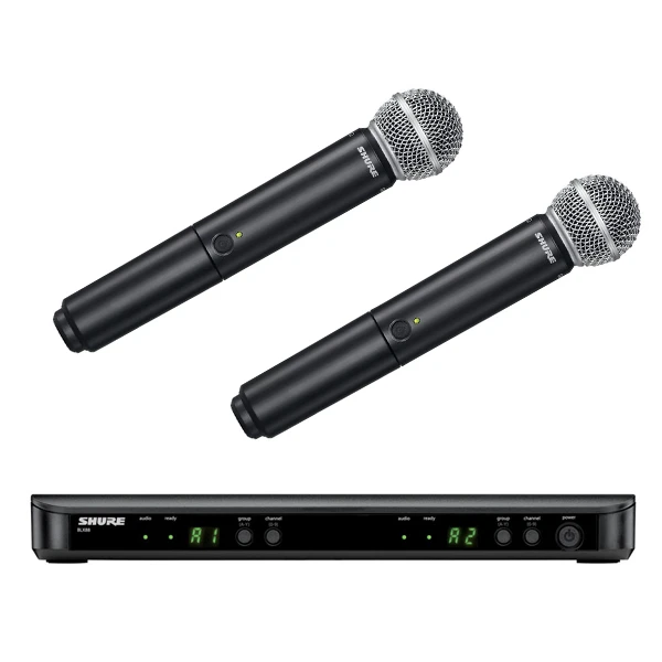 The BLX288/SM58 Wireless Dual Vocal System with two SM58, the industry-standard, highly versatile cardioid dynamic vocal microphone, tailored to deliver warm and clear vocal reproduction combines simple setup and an intuitive interface for performance you can trust in.