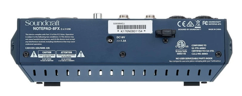 For a lightweight portable mixer, the Notepad-8FX certainly doesn’t fall short where I/O is concerned. You get XLR combo jacks, 1/4″ inputs, and RCA line inputs. On the output side, there’s a pair of XLR outputs that feed the mains (perfect for PA systems and studio monitors), a 1/4″ aux output, and a switchable main/aux headphone jack. USB turns the Notepad-8FX into even more of a mini-workhorse mixer, by providing a direct connection to your computer. This allows it to act as a 2-in/2-out USB audio interface, making it easy to record into your DAW. It also lets you stream audio from your computer, which you can use to play backing tracks or to inject your favorite virtual instruments right into the PA.