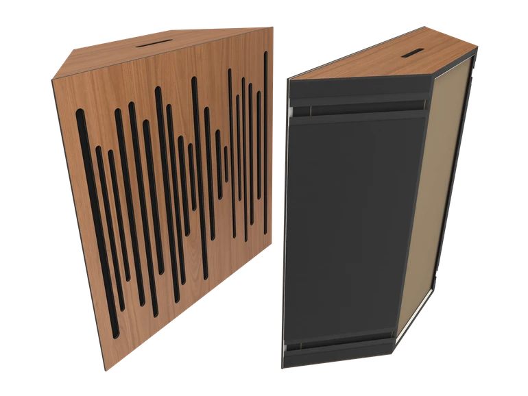 Appropriate for corner mounting, Super Bass Extreme Ultra provides effective low frequency absorption between 60-125 Hz, and delivers maximum effectiveness between 75 -100Hz. The wooden front panel has two functions, providing sufficient mid-high frequency absorption to control corner reflections without deadening the sound, while simultaneously acting as a diffuser.